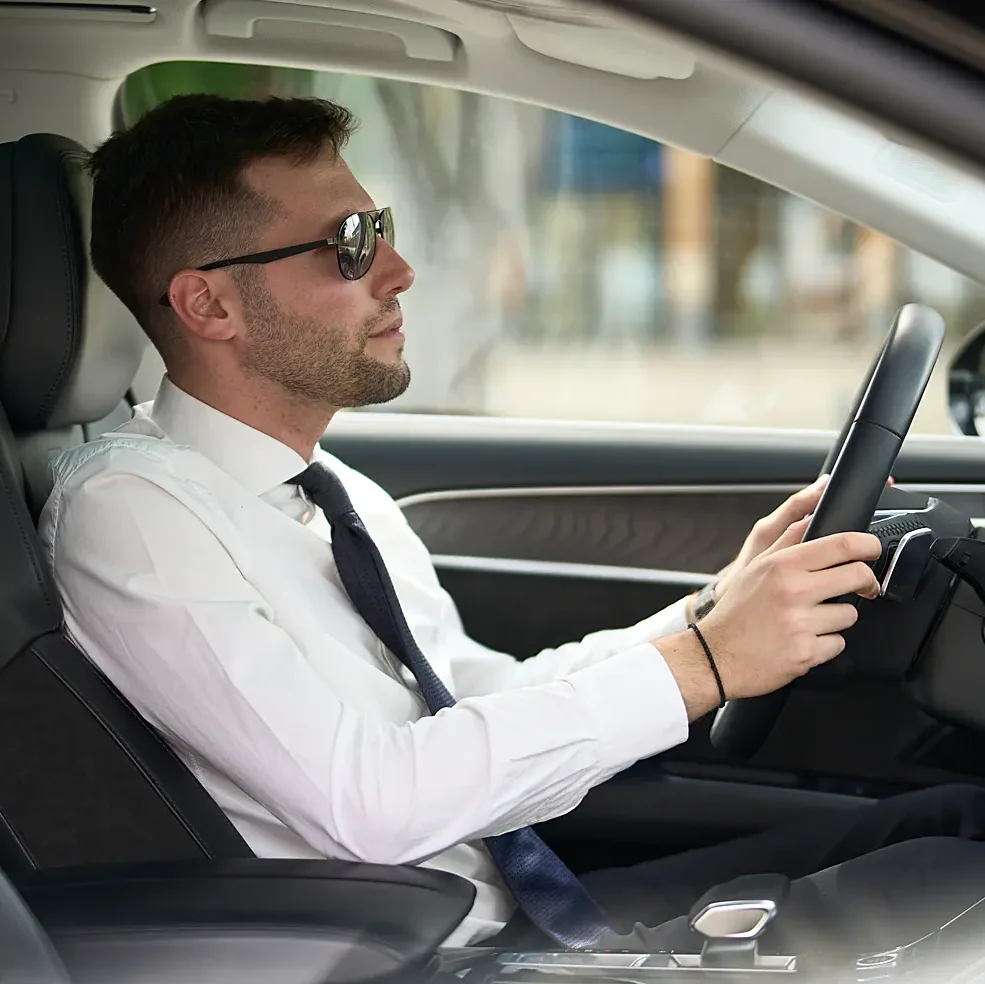 Unsere erfahrenen Chauffeure sorgen für eine ruhige, sichere Fahrt und übernehmen die Verantwortung, während Sie sich ganz auf Ihre Zeit konzentrieren können.